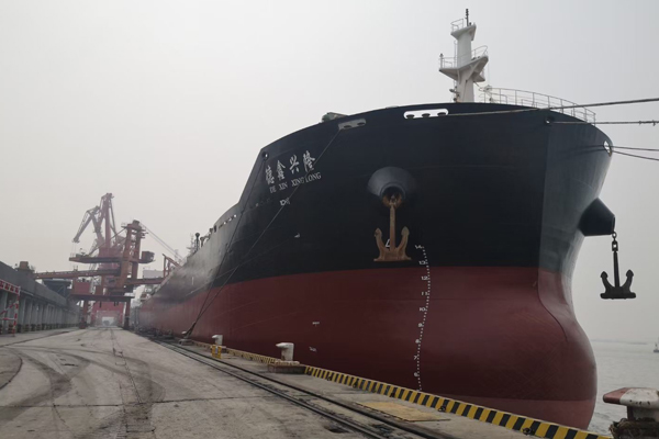 揚州海昌首次完成5萬噸級散貨海輪裝船作業