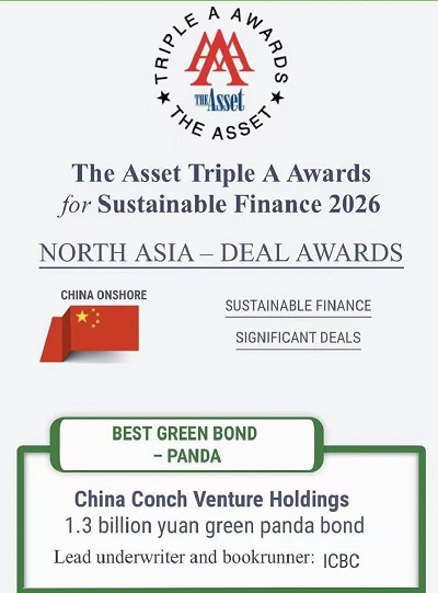 海螺創(chuàng)業(yè)綠色熊貓債項(xiàng)目榮獲香港《財(cái)資》雜志2026年度AAA獎(jiǎng)項(xiàng)