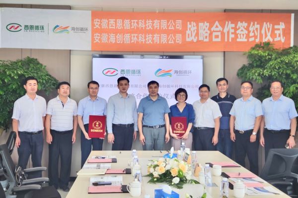 2023年6月25日,海創循環與安徽西恩循環科技有限公司會議室簽署《戰略合作框架協議》。海螺創業常務副總經理、海創循環董事長疏茂,西恩科技董事長趙志安出席并見證簽約儀式。