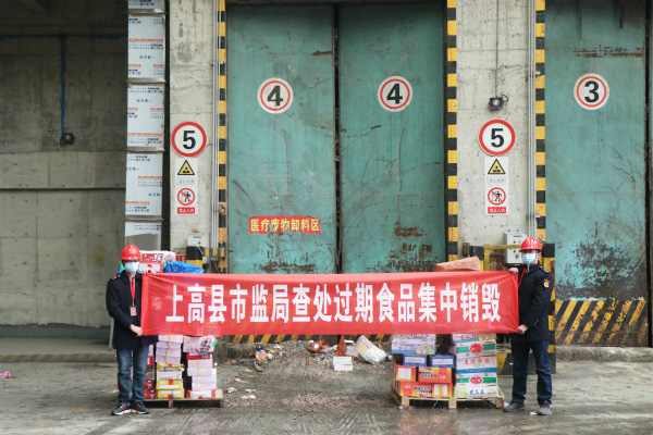 上高海創協助上高縣市場監督管理局集中銷毀過期食品