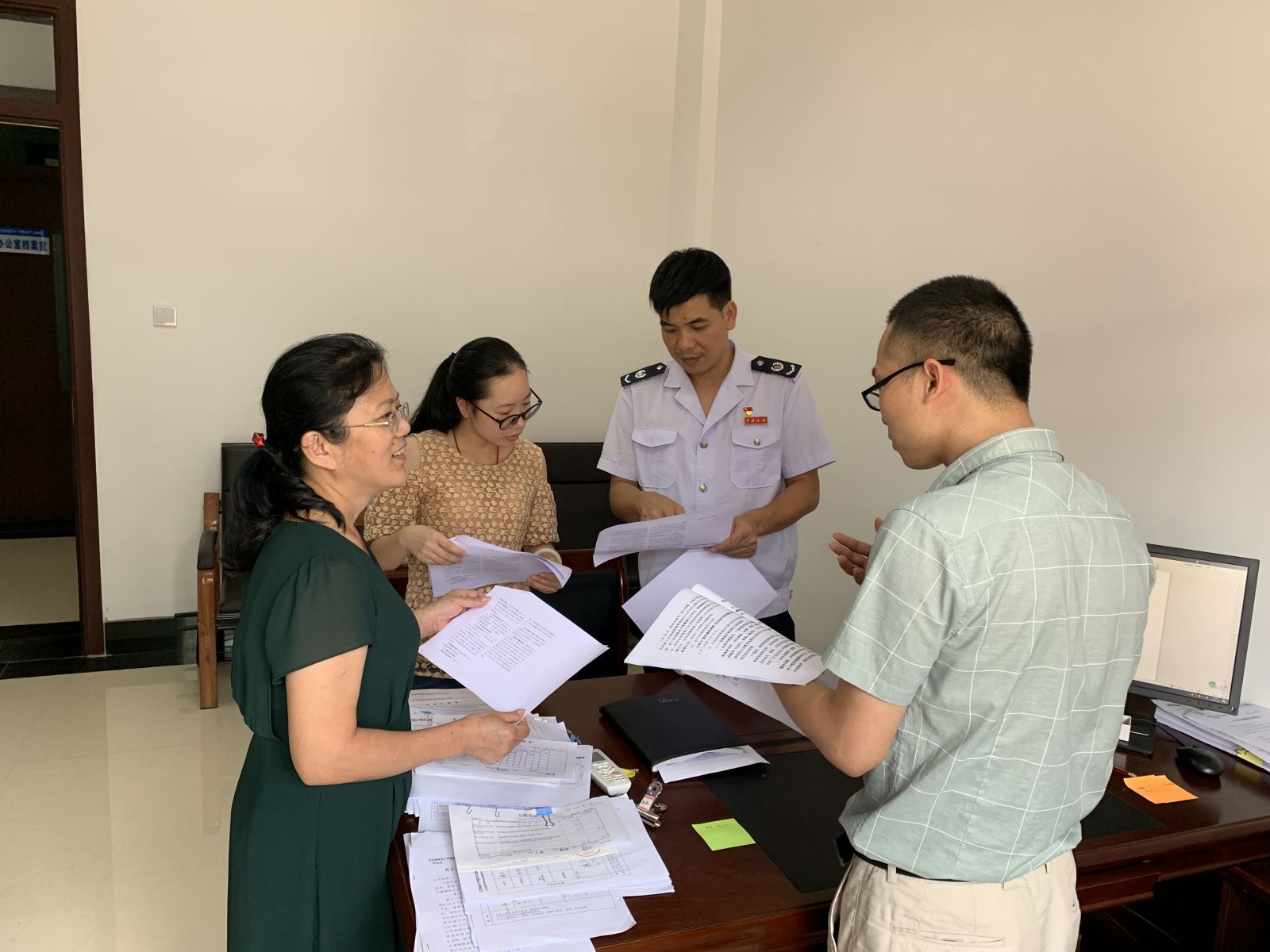? ? 黎雪飛局長一行在公司財(cái)務(wù)處負(fù)責(zé)人韋思任的陪同下,到公司進(jìn)行了簡短參觀,并了解我司近期經(jīng)營情況。