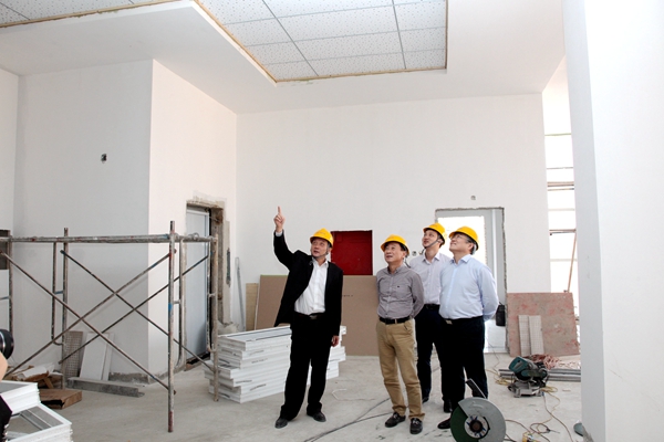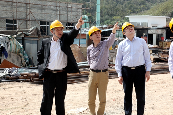 ? ? 上午,在金寨海創公司副總經理王錫成的陪同下,郭總一行到工程建設現場實地進行了踏勘,對各個子項施工進度全面進行檢查和了解。
