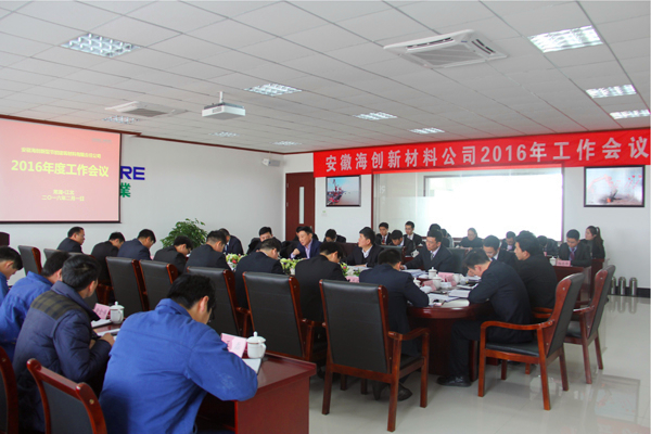 ? ? 2016年2月1日,安徽海創新材料公司2016年度工作會議在辦公樓二樓會議室召開,公司經營班子、中層管理及業務骨干人員共42人參加了會議,海螺創業公司董事長郭景彬、副總經理李劍到會并提出工作和管理要求。