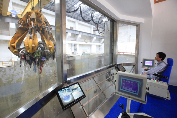 ????位於垃圾處理廠房6層的監(jiān)控中心,是這套系統(tǒng)唯一能看到有操作員的地方。整個工作場所像一個考究的會客廳,談笑之間,咖啡、茶水已呈現(xiàn)在訪客面前。海螺創(chuàng)業(yè)公司副總經(jīng)理李大明告訴記者,之所以把監(jiān)控中心做得如此整潔、舒心,主要是給前來考察參觀此項技術(shù)和設(shè)施的各界人士一個直觀的感覺:垃圾處理原來可以這樣來做。這樣的場景也讓很多周邊百姓所折服。