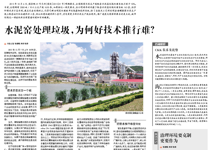 ????貴定縣副縣長黃智勇和原住建局局長蘇穎是貴定水泥窯協(xié)同處置城市生活垃圾專案的實踐者和見證人,他們說,在貴州都說這個專案好,但是就是因為缺少國家政策補貼,很多地方依然嚮往垃圾焚燒發(fā)電技術(shù),這可是能發(fā)電,又能拿到國家真金白銀的專案,所以推廣起來還是有一定難度。