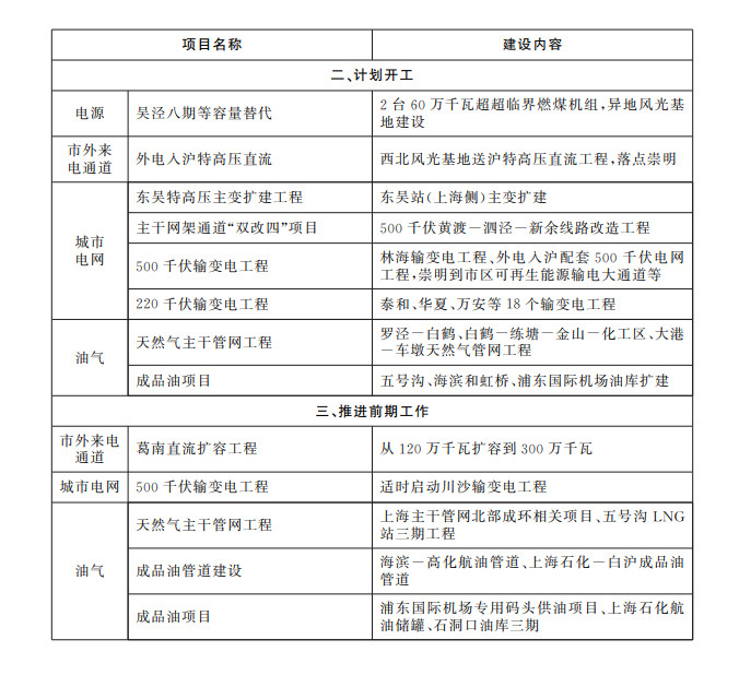 “十三五”期間,全市建成一批技術含量高、保障能力強的標志性能源項目。隨著淮南-南京-上海1000千伏特高壓交流通道和500千伏五角場變電站等重大電網工程建成投運,以“五交四直”市外來電通道和500千伏雙環網為支撐的城市主干電網結構更為完善。奉賢、崇明等燃機項目建成投產,閔行燃機項目開工建設,石洞口電廠等容量替代項目啟動實施,新增電源全部為清潔能源發電。建成洋山LNG儲罐擴建工程、臨港-上海化工區天然氣管道等一批重點油氣項目,形成以“6+1”多氣源和C字形城市主干管網為支撐的聯供體系,出臺《上海市天然氣產供儲銷體系建設方案》,油氣應急儲備能力有效提升,天然氣產供儲銷體系在國內處于領先水平。