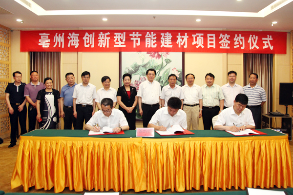 On the afternoon of Jun 26th 2013, the signing ceremony of Bozhou conch venture new energy-saving building materials project was held in Bozhou hotel. The deputy mayor of Bozhou city Wang Song and the vice general manager of conch venture Li Jian attended the ceremony.